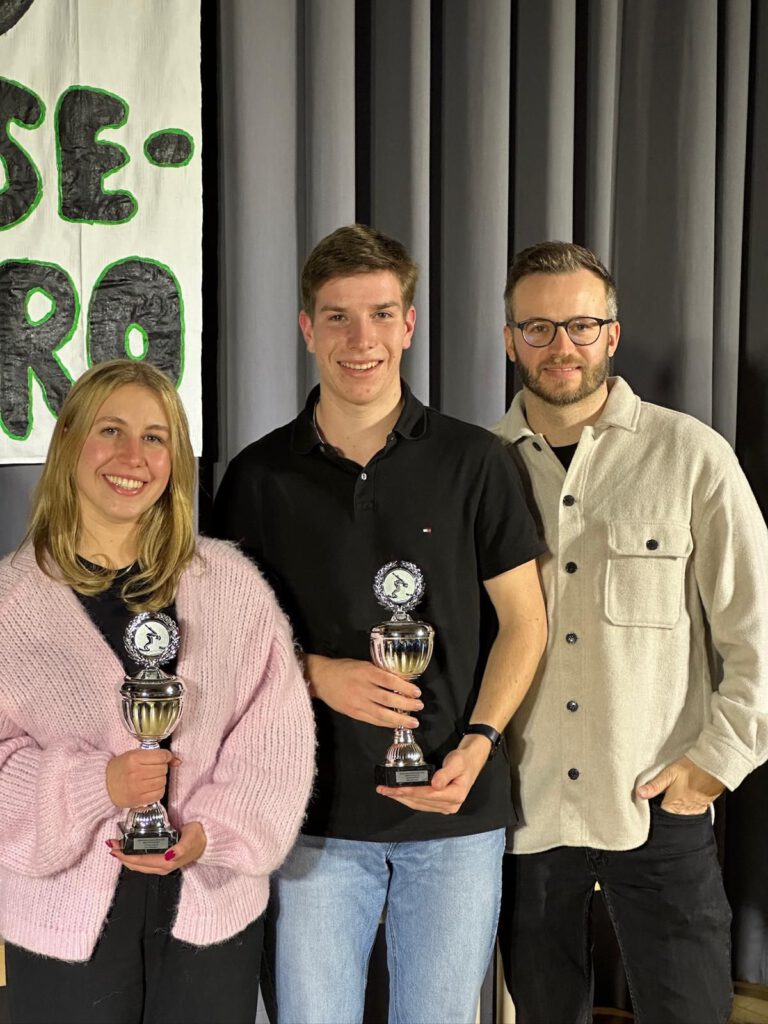 Fester Bestandteil der Nikofeier ist auch die Verleihung des Fritz-Müller-Pokals. Dieser wird traditionell an eine Person vergeben, der sich mit besonderem Engagement und außergewöhnlichen Leistungen in der Schwimmabteilung einbringt. In diesem Jahr durfte sich Rebecca Kölbl über den Pokal freuen, die ihn sichtlich gerührt entgegennahm. Als langjährige aktive Schwimmerin, mittlerweile in der Masters-Mannschaft, zieht sie nicht nur selbst ihre Bahnen und repräsentiert den TV Nellingen auf Wettkämpfen sondern kümmert sich auch mit viel Leidenschaft um unseren Schwimmnachwuchs.